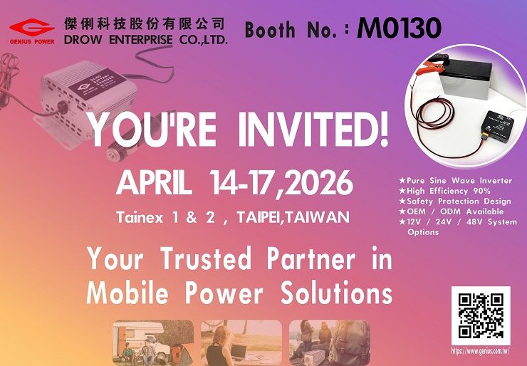 2026/01/19 Genius powerDrow Enterprise Co., Ltd. exposera à Taipei AMPA 2026, l'un des principaux salons B2B d'Asie pour les industries de l'automobile et de la mobilité intelligente.