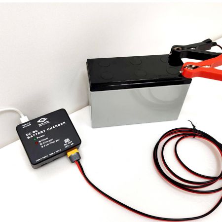 - Suporta baterias recarregáveis de 12V (LiPo e chumbo-ácido)